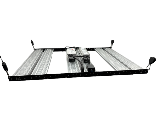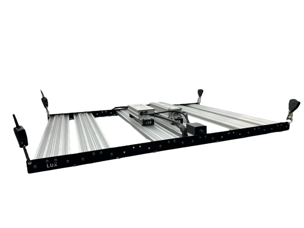 Esta lampara cubre un espacio de 100×100 de FORMA ÓPTIMA con un promedio de 900 ppfd o un 120×120 con un promedio de 700 ppfd